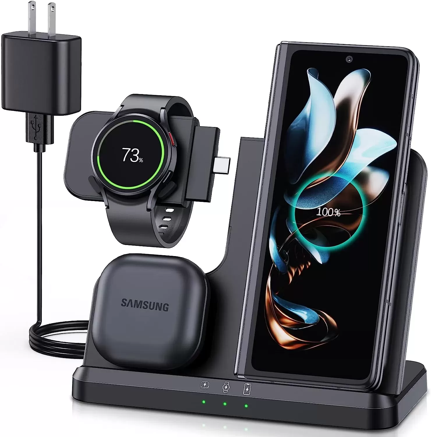 Samsung Wireless Charger, Metmoon 3 in 1 Samsung Charging Station for Galaxy S23 S22 S21 S20 Ultra FE/Note 20 10 9/Z Flip Fold Series, Galaxy Watch 5 Pro/5/4/3/Active 2/1, Buds+/Pro/Live(With Adapter)