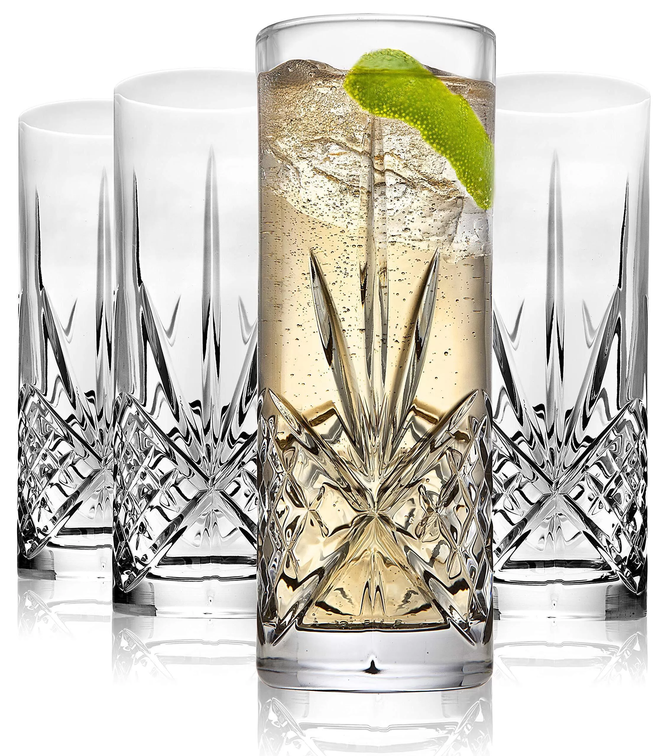 Tall Beverage Glasses Collins All Purpose Drinking Glasses- Dublin Collection, SET OF 4