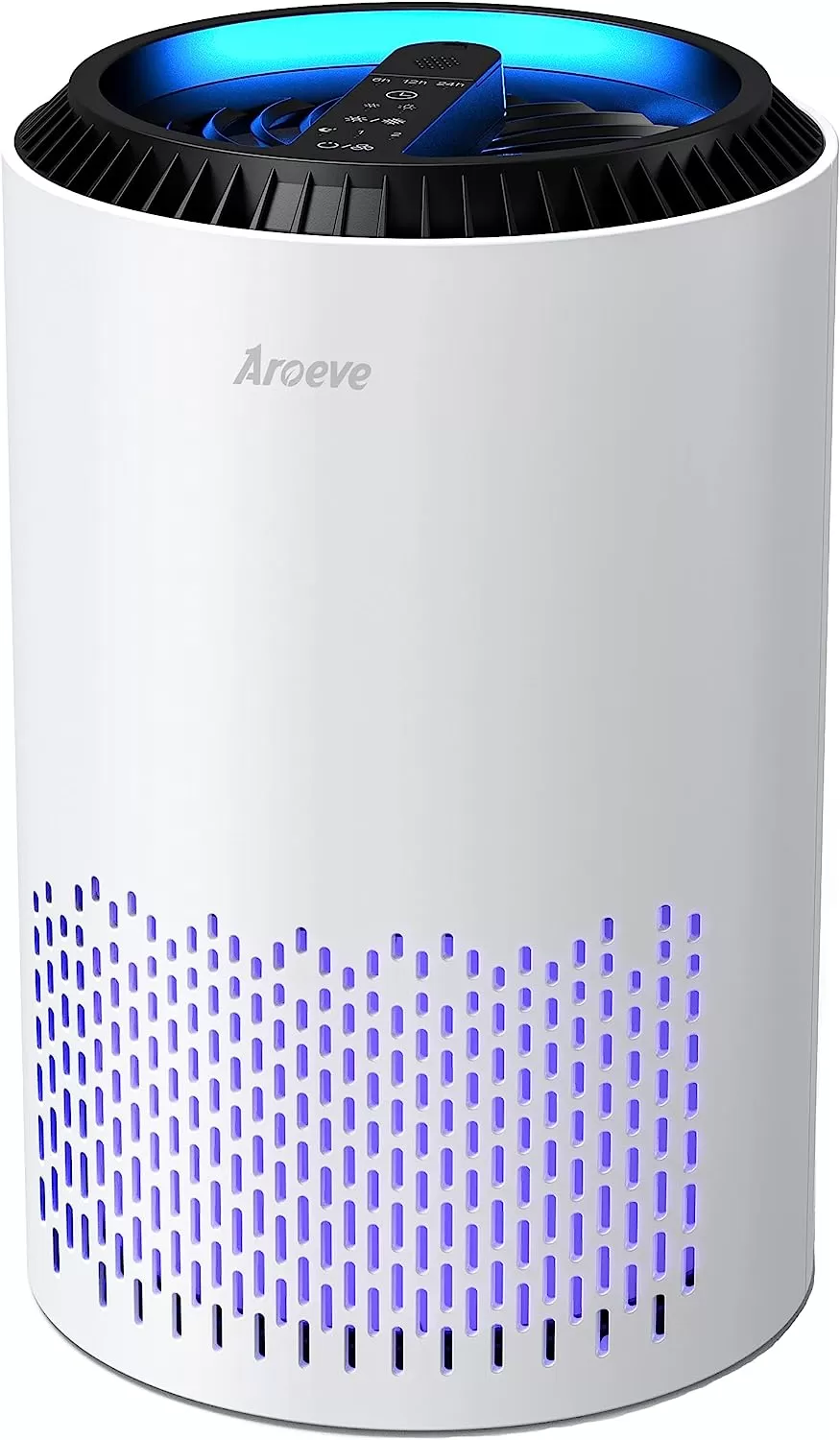 AROEVE Air Purifiers for Home, HEPA Air Purifiers Air Cleaner For Smoke Pollen Dander Hair Smell Portable Air Purifier with Sleep Mode Speed Control For Bedroom Office Living Room, MK01- White